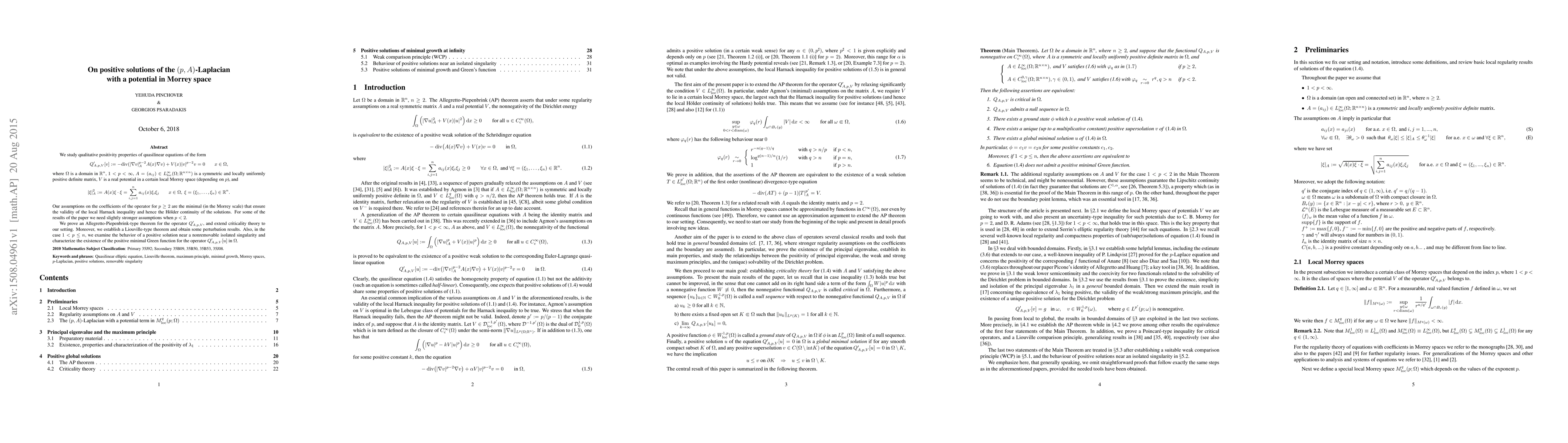 We study qualitative positivity properties of quasilinear equations of the form \[ Q'_{A,p,V}[v] := -\mathrm{div}(|\nabla v|_A^{p-2}A(x)\nabla v) + V(x)|v|^{p-2}v =0 \qquad x\in\Omega, \] where $\Omega$ is a domain in $\mathbb{R}^n$, $1