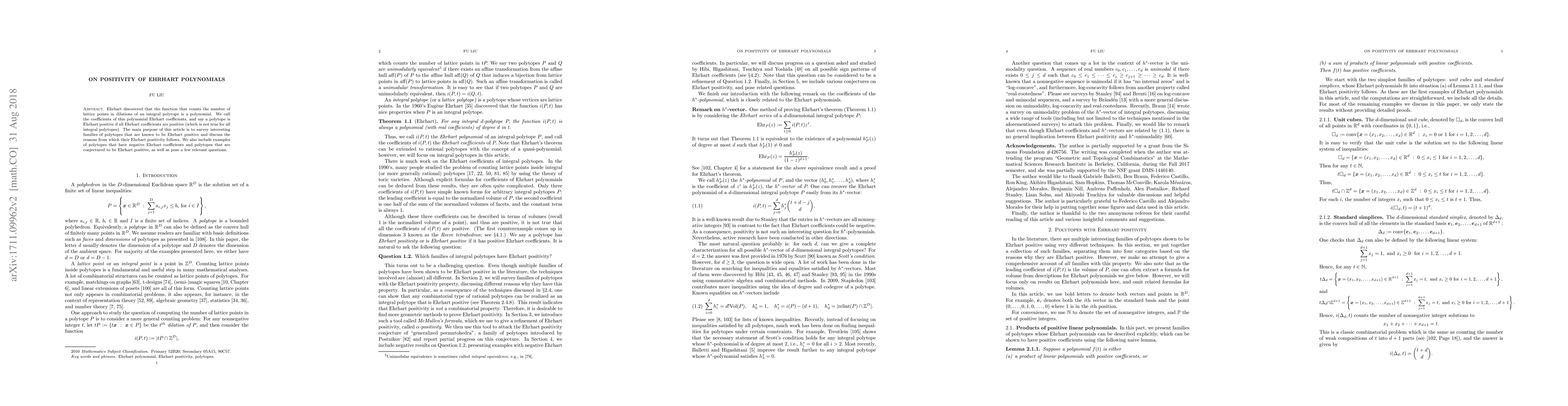 Ehrhart discovered that the function that counts the number of lattice points in dilations of an integral polytope is a polynomial. We call the coefficients of this polynomial Ehrhart coefficients, and say a polytope is Ehrhart positive if all Ehrhart coefficients are positive (which is not true for all integral polytopes). The main purpose of this article is to survey interesting families of polytopes that are known to be Ehrhart positive and discuss the reasons from which their Ehrhart positivity follows. We also include examples of polytopes that have negative Ehrhart coefficients and polytopes that are conjectured to be Ehrhart positive, as well as pose a few relevant questions.