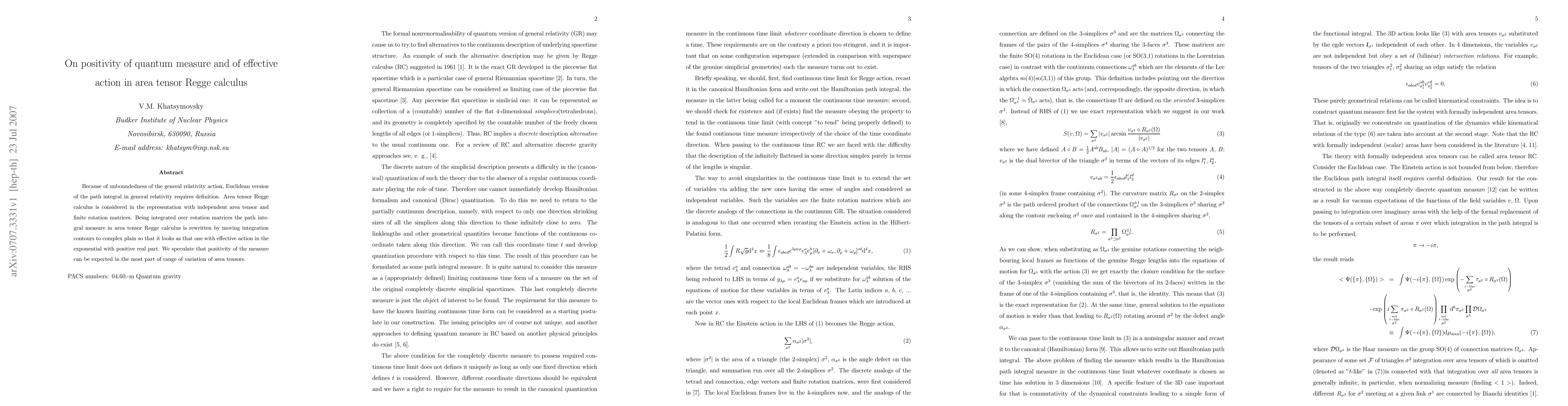 This paper explores the positivity of quantum measure in area tensor Regge calculus by redefining the path integral measure through complex integration contours, leading to an effective action with a positive real part. The authors speculate that this positivity likely extends over a broad range of area tensor variations.