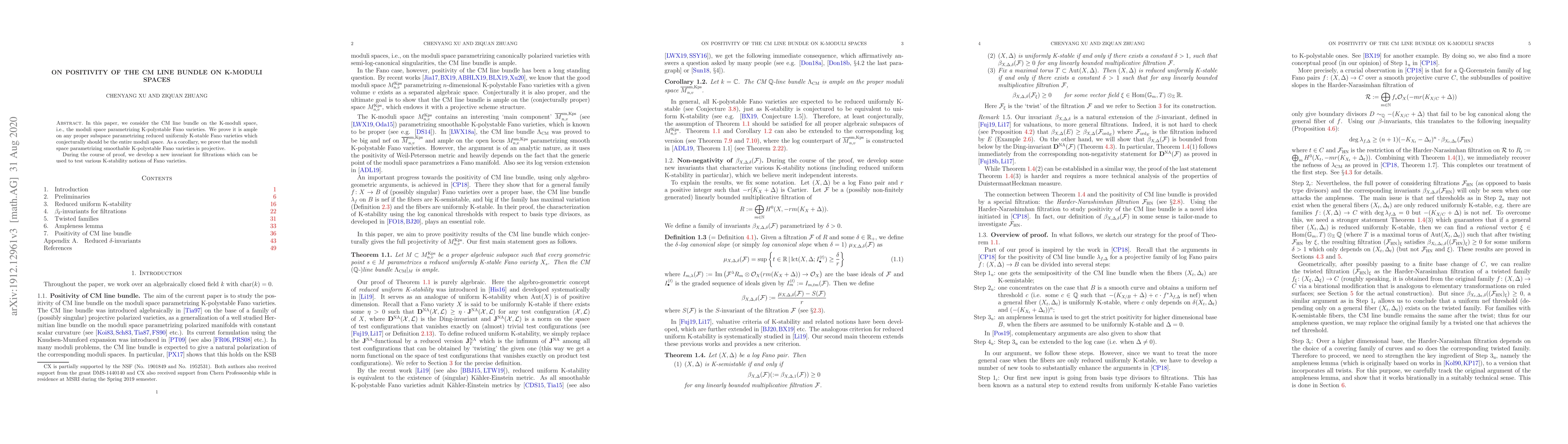 In this paper, we consider the CM line bundle on the K-moduli space, i.e., the moduli space parametrizing K-polystable Fano varieties. We prove it is ample on any proper subspace parametrizing reduced uniformly K-stable Fano varieties which conjecturally should be the entire moduli space. As a corollary, we prove that the moduli space parametrizing smoothable K-polystable Fano varieties is projective. During the course of proof, we develop a new invariant for filtrations which can be used to test various K-stability notions of Fano varieties.