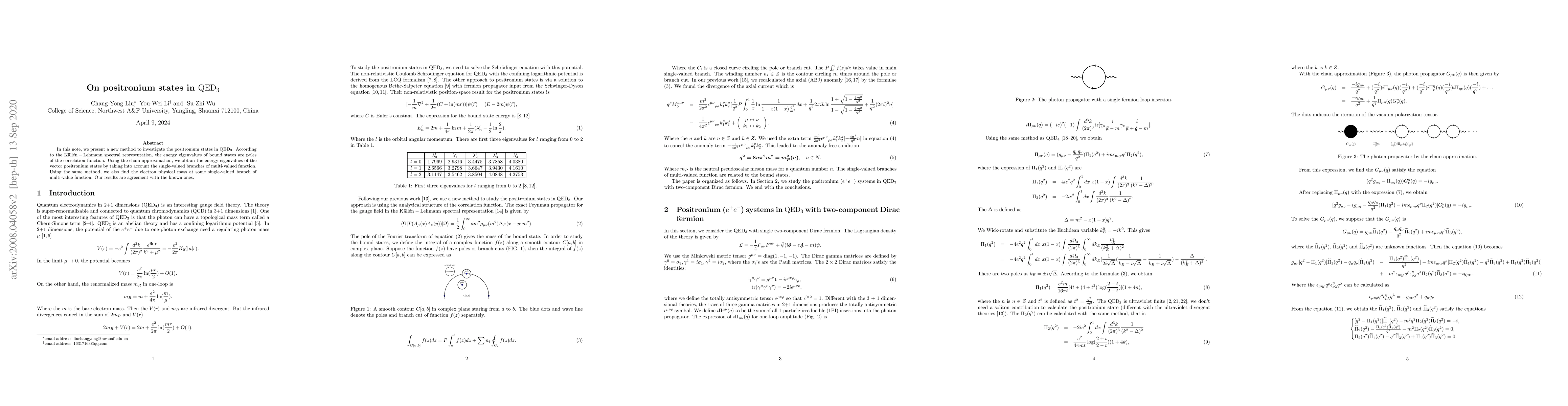 This paper introduces a novel method to study positronium states in ${\rm{QED_3}}$, deriving energy eigenvalues using the $\rm{K\ddot{a}ll\acute{e}n-Lehmann}$ spectral representation and chain approximation. The method also determines the electron physical mass, yielding results consistent with existing knowledge.