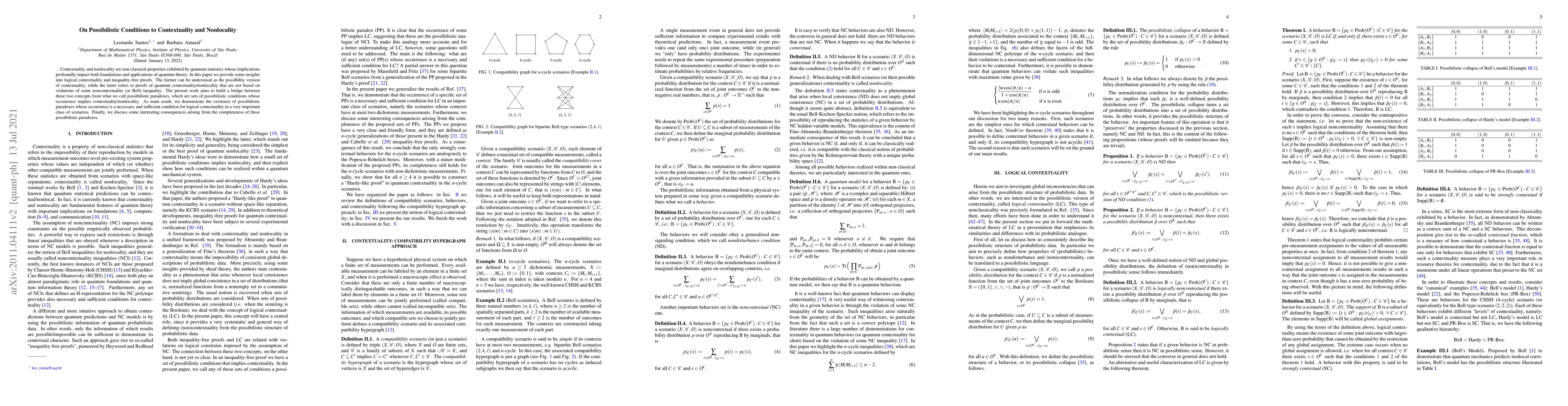 Contextuality and nonlocality are non-classical properties exhibited by quantum statistics whose implications profoundly impact both foundations and applications of quantum theory. In this paper we provide some insights into logical contextuality and inequality-free proofs. The former can be understood as the possibility version of contextuality, while the latter refers to proofs of quantum contextuality/nonlocality that are not based on violations of some noncontextuality (or Bell) inequality. The present work aims to build a bridge between these two concepts from what we call possibilistic paradoxes, which are sets of possibilistic conditions whose occurrence implies contextuality/nonlocality. As main result, we demonstrate the existence of possibilistic paradoxes whose occurrence is a necessary and sufficient condition for logical contextuality in a very important class of scenarios. Finally, we discuss some interesting consequences arising from the completeness of these possibilistic paradoxes.