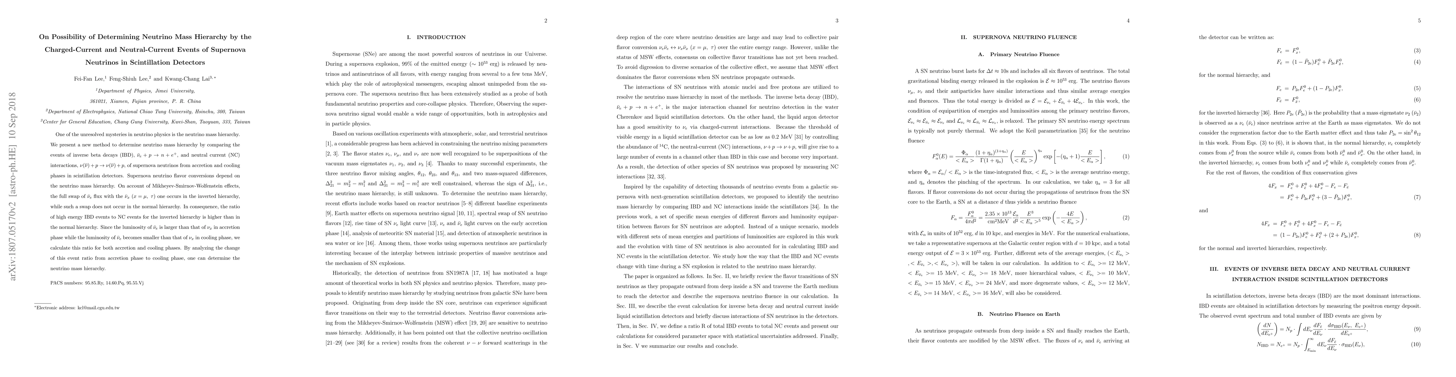 This paper proposes a novel method to determine the neutrino mass hierarchy by analyzing the charged-current inverse beta decay and neutral-current interactions of supernova neutrinos in scintillation detectors. The method leverages the differing behavior of neutrino flavor conversions under the Mikheyev-Smirnov-Wolfenstein effect in the normal and inverted hierarchies to identify the hierarchy based on the ratio of these events.