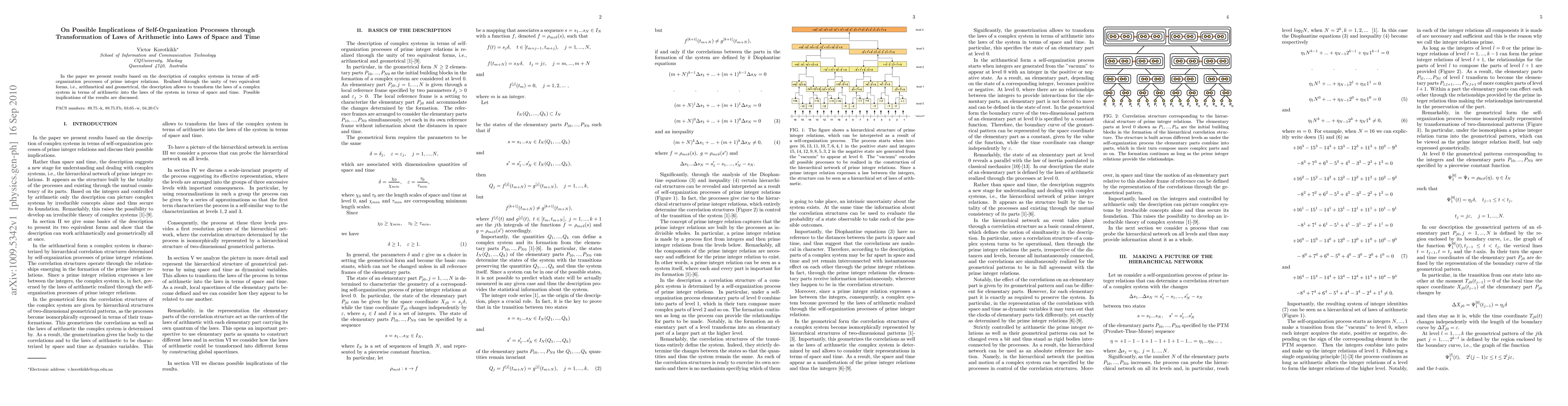 Researchers describe a method to transform laws of arithmetic into laws of space and time in complex systems through self-organization processes, with possible implications for understanding the universe.