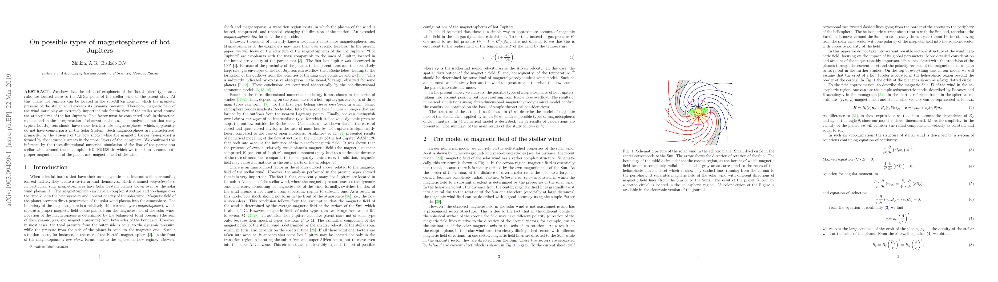 This paper explores the magnetospheres of hot Jupiters, finding they often lie near the Alfvén point of their parent star's wind, leading to shock-less intrinsic magnetospheres formed by induced ionospheric currents rather than bow shocks. Numerical simulations confirm these unique magnetic structures.