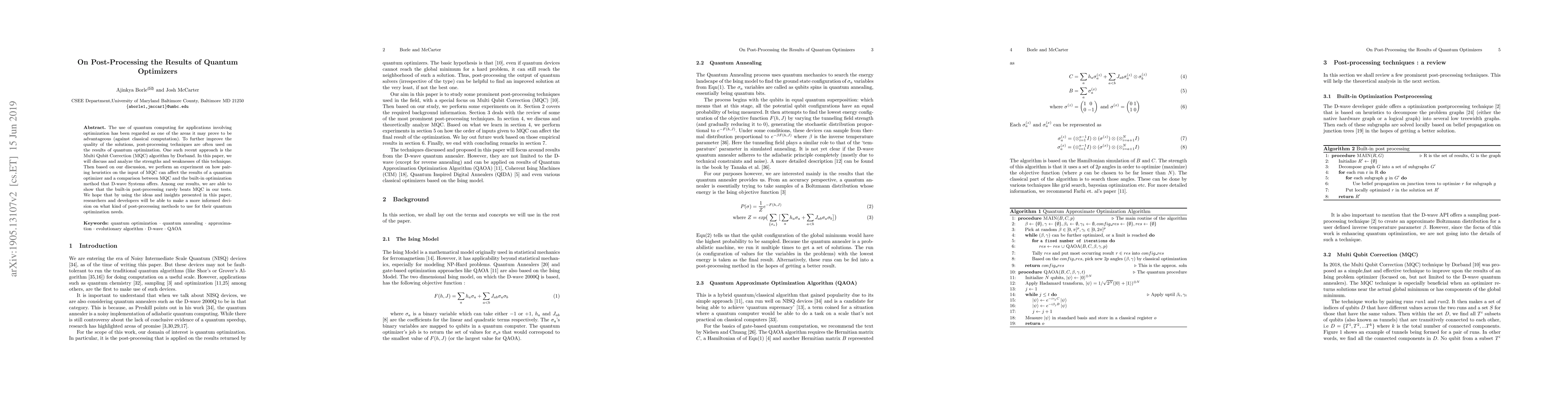 This paper analyzes the Multi Qubit Correction (MQC) algorithm for post-processing quantum optimization results, comparing it to D-wave's built-in method. Experiments show that MQC often outperforms the built-in method, offering insights for researchers on effective post-processing techniques.