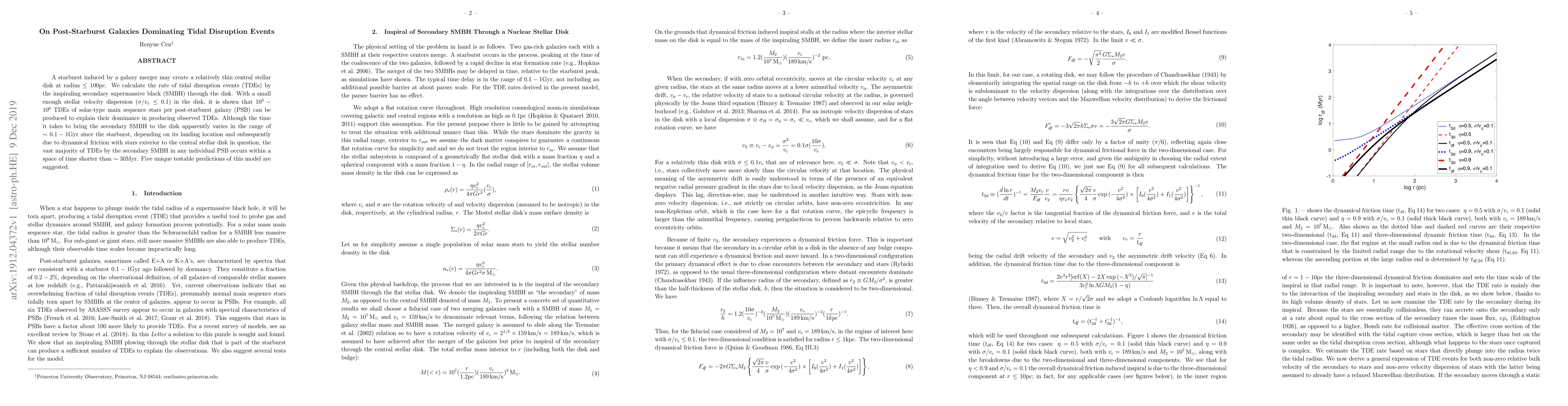 A study suggests that post-starburst galaxies can produce $10^5-10^6$ tidal disruption events per galaxy through the inspiraling of a supermassive black hole in their thin central stellar disk.