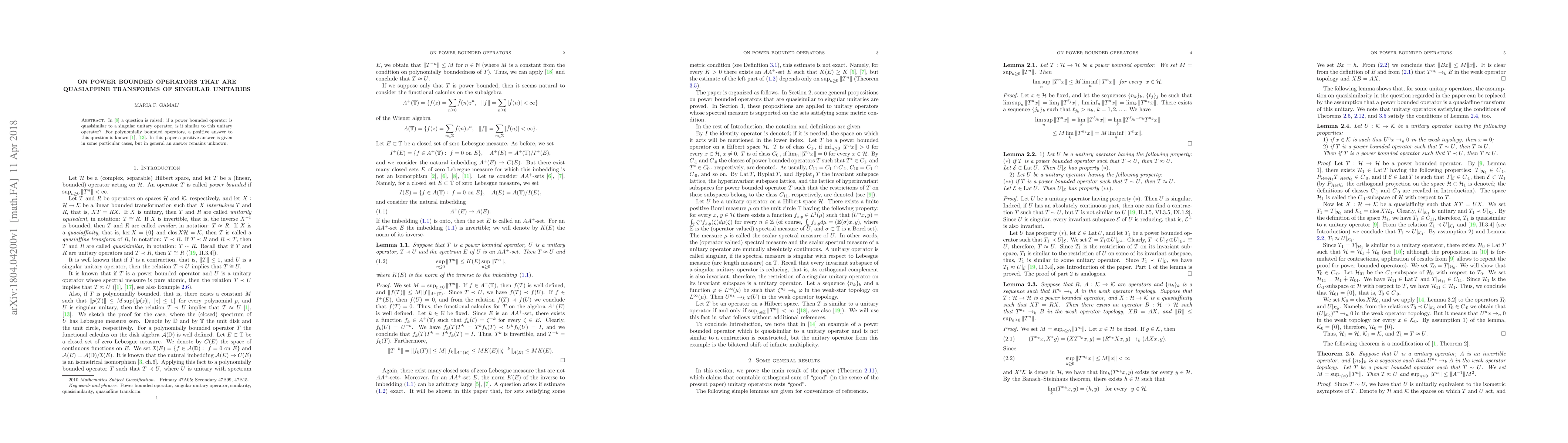 In [9] a question is raised: if a power bounded operator is quasisimilar to a singular unitary operator, is it similar to this unitary operator? For polynomially bounded operators, a positive answer to this question is known [1], [13]. In this paper a positive answer is given in some particular cases, but in general an answer remains unknown.