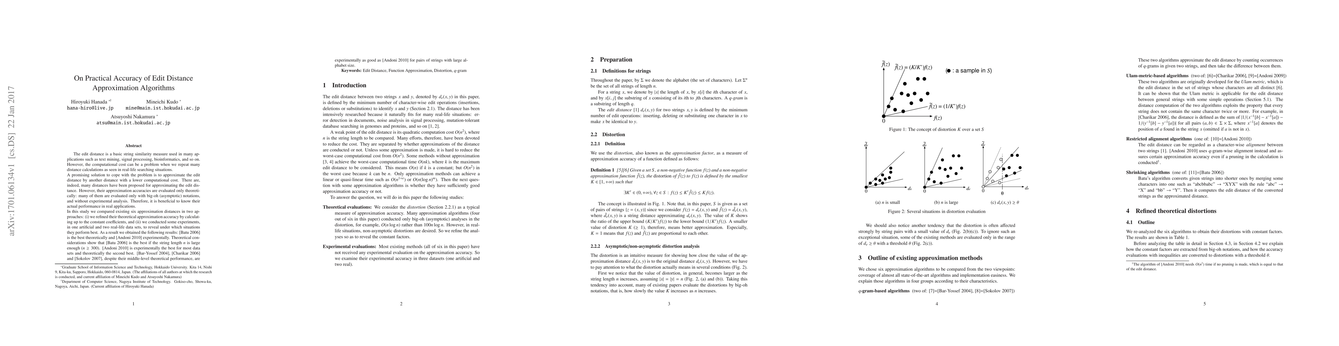 The edit distance is a basic string similarity measure used in many applications such as text mining, signal processing, bioinformatics, and so on. However, the computational cost can be a problem when we repeat many distance calculations as seen in real-life searching situations. A promising solution to cope with the problem is to approximate the edit distance by another distance with a lower computational cost. There are, indeed, many distances have been proposed for approximating the edit distance. However, their approximation accuracies are evaluated only theoretically: many of them are evaluated only with big-oh (asymptotic) notations, and without experimental analysis. Therefore, it is beneficial to know their actual performance in real applications. In this study we compared existing six approximation distances in two approaches: (i) we refined their theoretical approximation accuracy by calculating up to the constant coefficients, and (ii) we conducted some experiments, in one artificial and two real-life data sets, to reveal under which situations they perform best. As a result we obtained the following results: [Batu 2006] is the best theoretically and [Andoni 2010] experimentally. Theoretical considerations show that [Batu 2006] is the best if the string length n is large enough (n >= 300). [Andoni 2010] is experimentally the best for most data sets and theoretically the second best. [Bar-Yossef 2004], [Charikar 2006] and [Sokolov 2007], despite their middle-level theoretical performance, are experimentally as good as [Andoni 2010] for pairs of strings with large alphabet size.