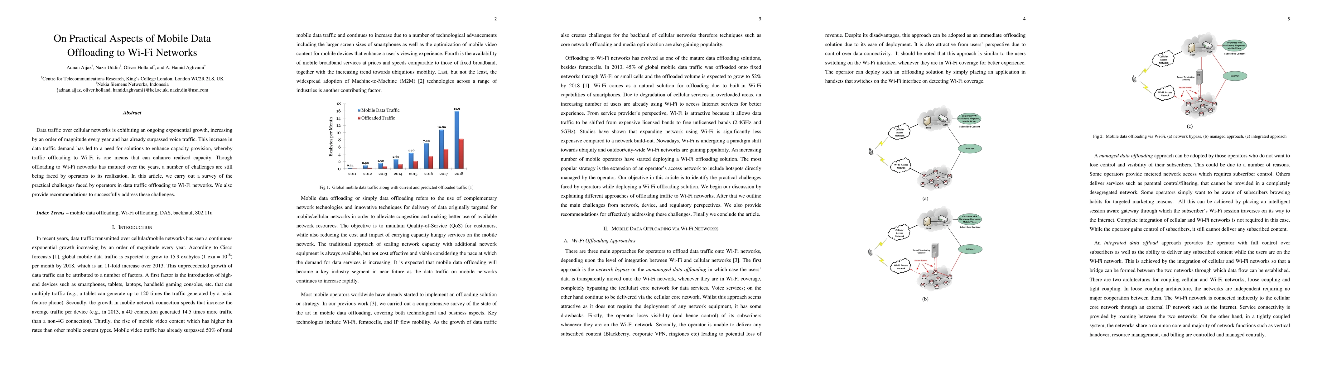 This paper surveys practical challenges faced by operators in offloading mobile data traffic to Wi-Fi networks to enhance capacity, and provides recommendations to address these challenges effectively.