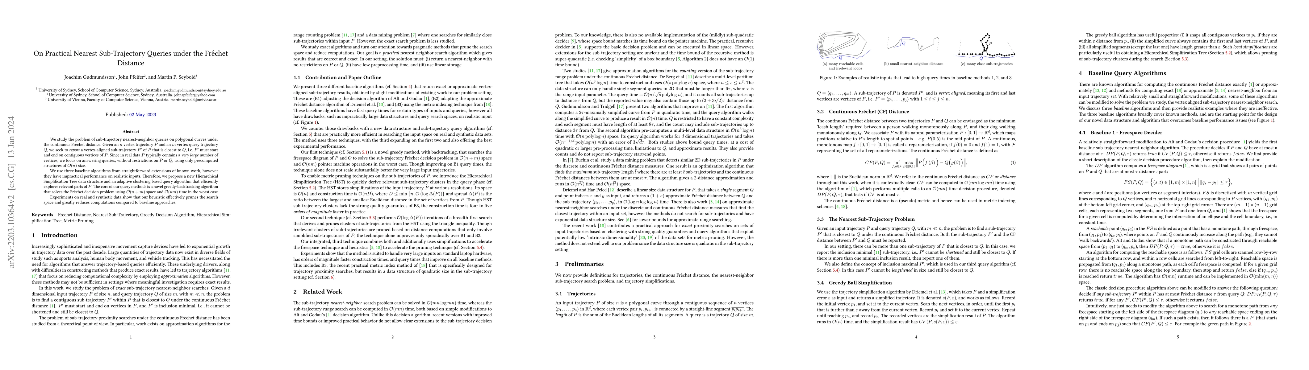 This paper addresses the problem of finding the nearest sub-trajectory within a large polygonal curve under the Fr\'echet distance, proposing a new Hierarchical Simplification Tree and adaptive clustering algorithm to efficiently handle queries with precomputed structures of ${\mathcal{O}}(n)$ size. Experimental results show significant performance improvements over baseline methods.