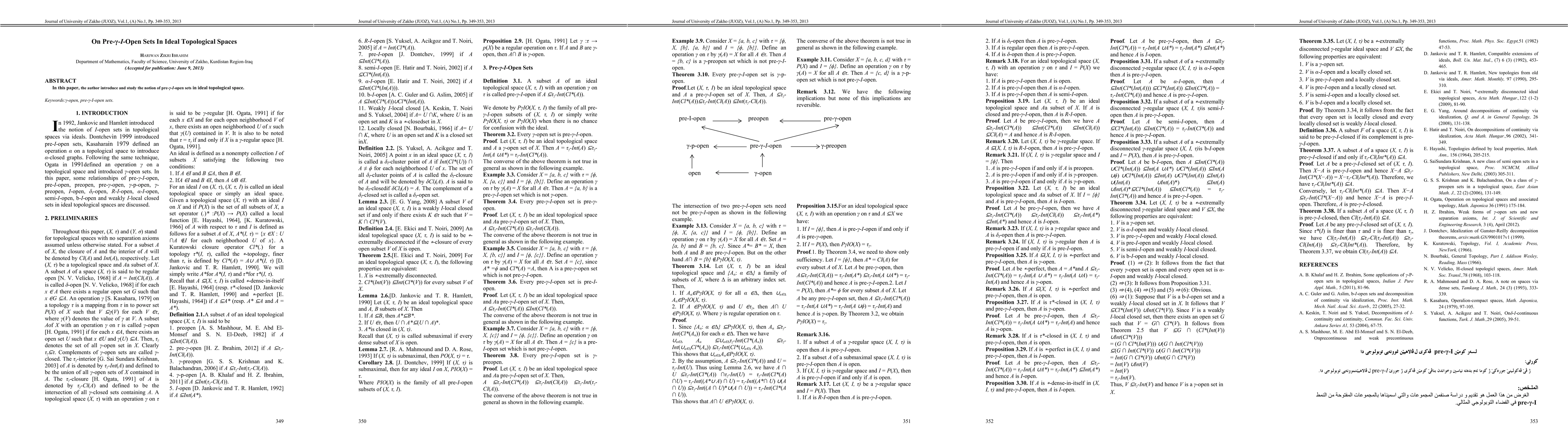 Summary: This paper introduces the concept of pre-{\gamma}-I-open sets within the context of ideal topological spaces and explores their properties. The study aims to extend the understanding of topological structures in these specialized spaces.