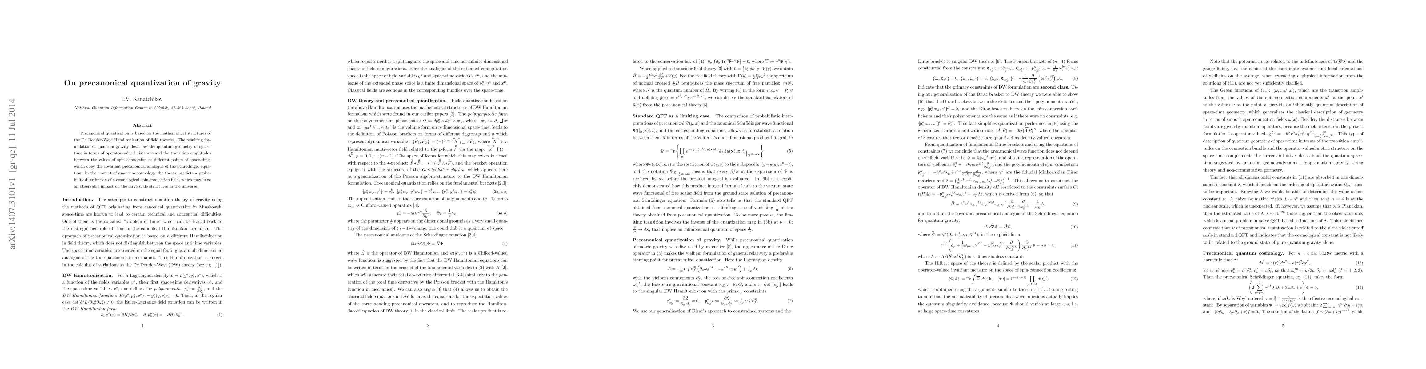 This research paper explores a new approach to quantum gravity called precanonical quantization, which describes space-time geometry in terms of operator-valued distances and transition amplitudes. It predicts a probability distribution for a cosmological spin-connection field that could impact large-scale universe structures.