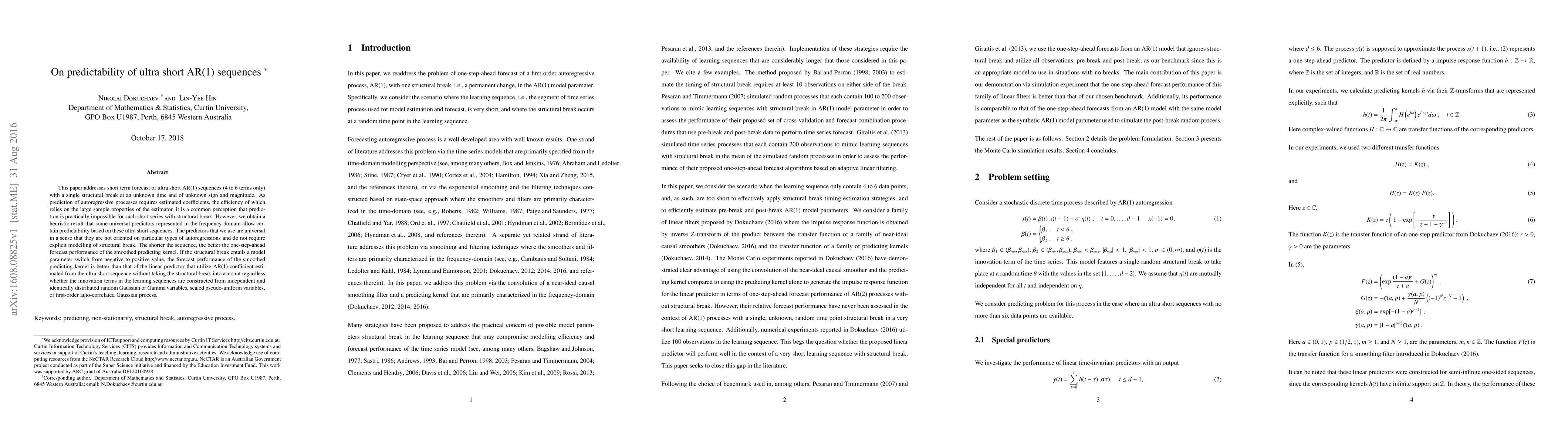 Researchers found that short AR(1) sequences with a single structural break can be predicted using universal frequency-domain predictors, outperforming traditional linear predictors.