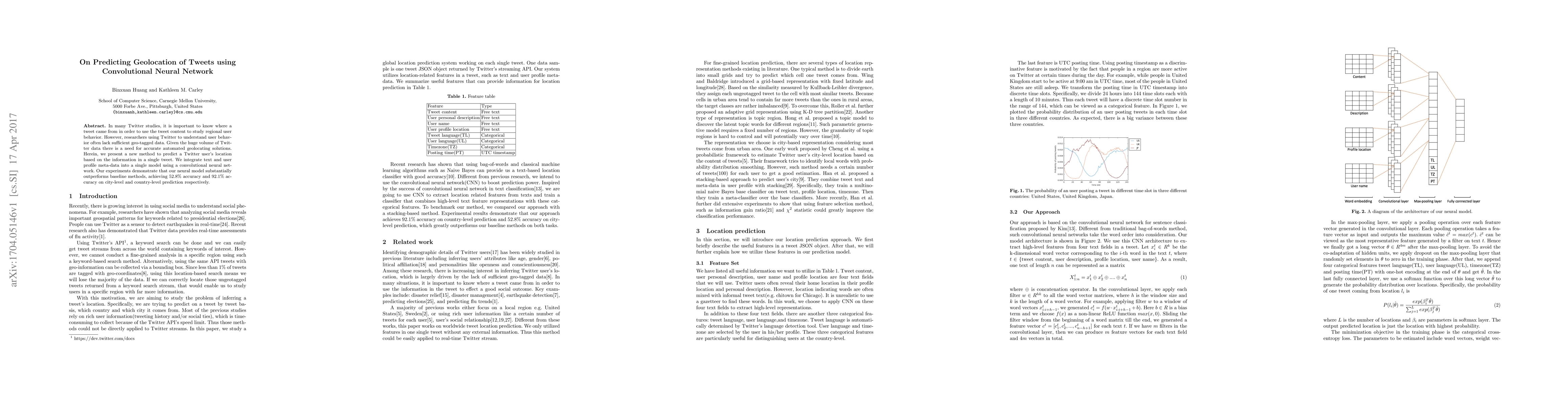 Researchers developed a method to predict Twitter users' locations using convolutional neural networks, achieving high accuracy rates of 52.8% for city-level and 92.1% for country-level predictions.