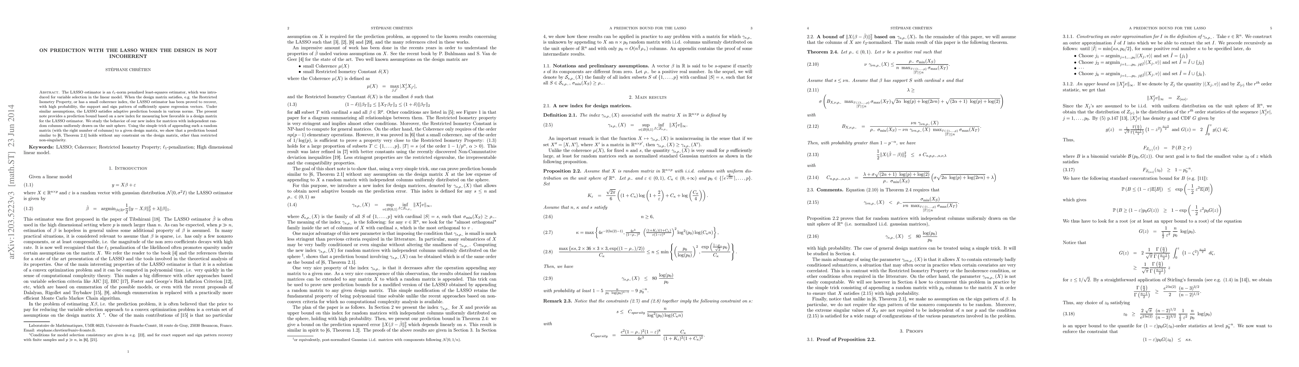 This paper introduces a new index to measure the favorable design for the LASSO estimator, providing a prediction bound that applies without requiring incoherence assumptions. It demonstrates the effectiveness of this index through analysis of random matrices and shows that similar prediction bounds hold even without specific design constraints.