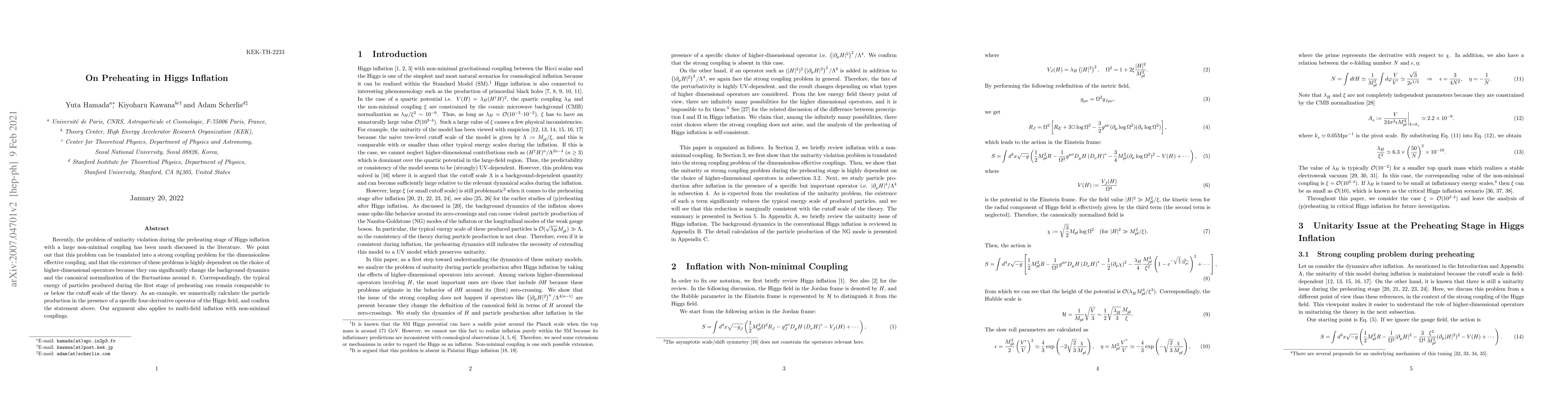 Recently, the problem of unitarity violation during the preheating stage of Higgs inflation with a large non-minimal coupling has been much discussed in the literature. We point out that this problem can be translated into a strong coupling problem for the dimensionless effective coupling, and that the existence of these problems is highly dependent on the choice of higher-dimensional operators because they can significantly change the background dynamics and the canonical normalization of the fluctuations around it. Correspondingly, the typical energy of particles produced during the first stage of preheating can remain comparable to or below the cutoff scale of the theory. As an example, we numerically calculate the particle production in the presence of a specific four-derivative operator of the Higgs field, and confirm the statement above. Our argument also applies to multi-field inflation with non-minimal couplings.