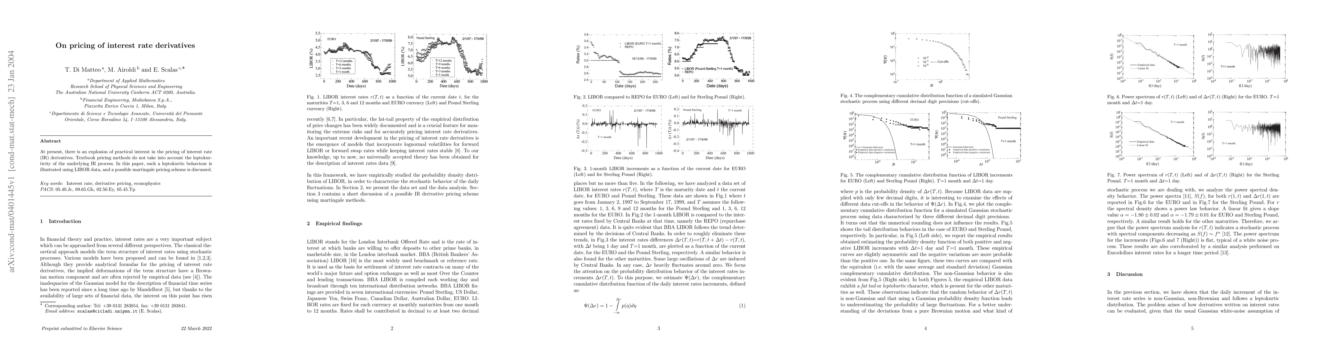 At present, there is an explosion of practical interest in the pricing of interest rate (IR) derivatives. Textbook pricing methods do not take into account the leptokurticity of the underlying IR process. In this paper, such a leptokurtic behaviour is illustrated using LIBOR data, and a possible martingale pricing scheme is discussed.