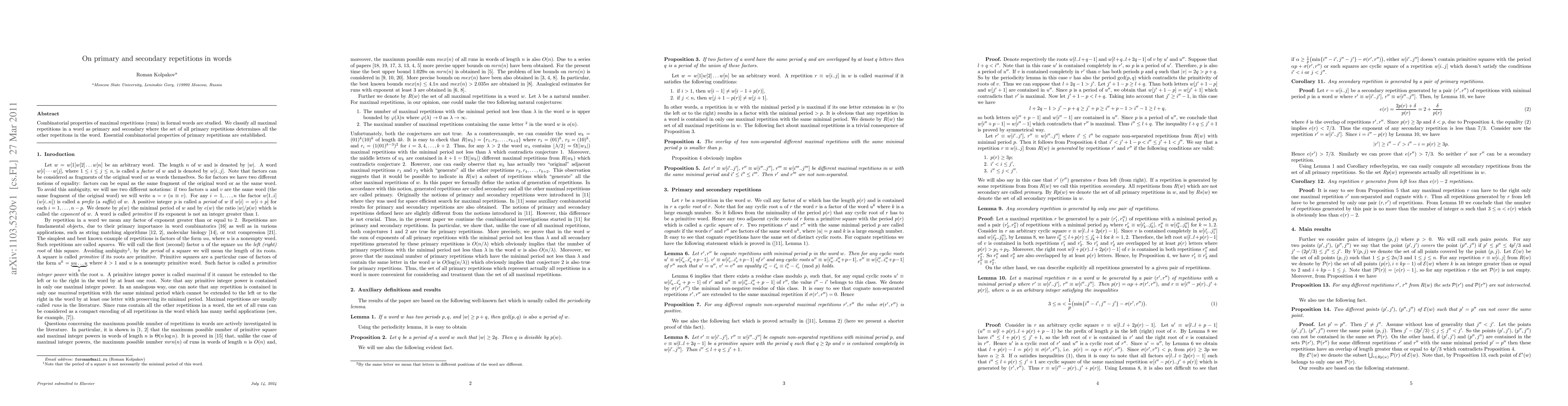 This research classifies maximal repetitions in formal words into primary and secondary types, demonstrating that primary repetitions uniquely determine all other repetitions in the word. The study establishes essential combinatorial properties of primary repetitions.
