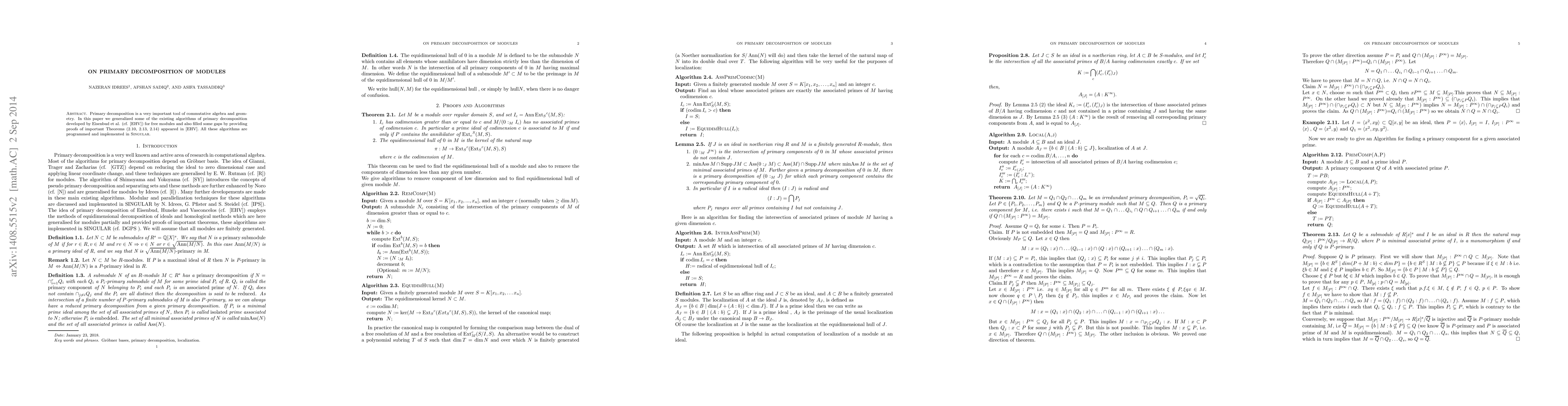 Researchers generalized algorithms for primary decomposition of free modules, filling gaps in existing methods and providing new proofs, and implemented them in the { t Singular} software package.