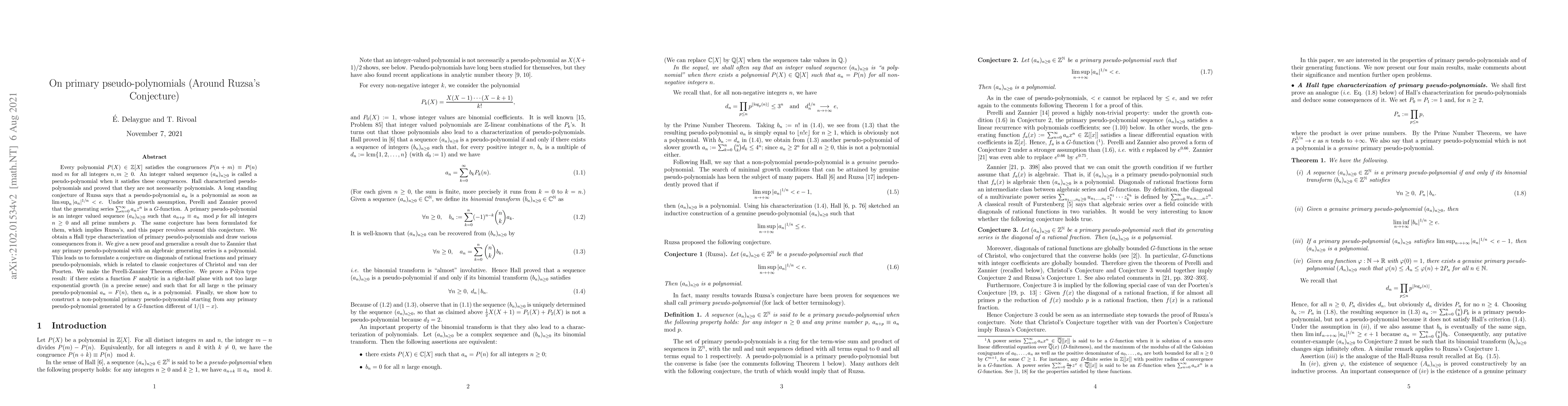 congruences. Hall characterized pseudo-polynomials and proved that they are not