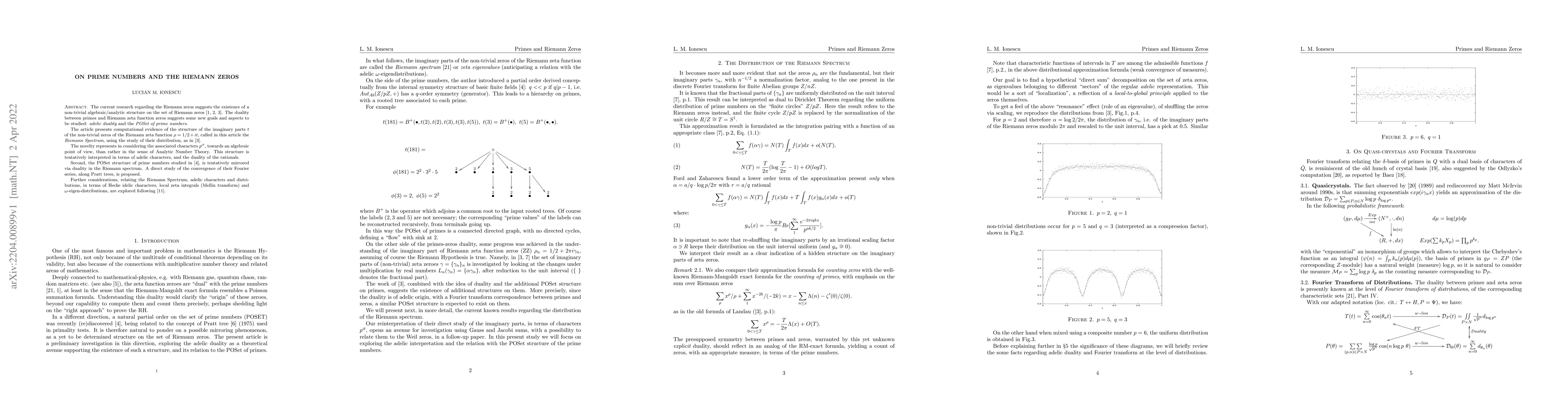 This paper explores the non-trivial algebraic structure of the Riemann zeros and their relation to prime numbers, introducing the concept of the "Riemann Spectrum" based on the distribution of their imaginary parts. It proposes an algebraic viewpoint through adelic characters and studies the POSet structure of primes mirrored in the Riemann spectrum, suggesting potential convergence through Fourier series and Pratt trees.
