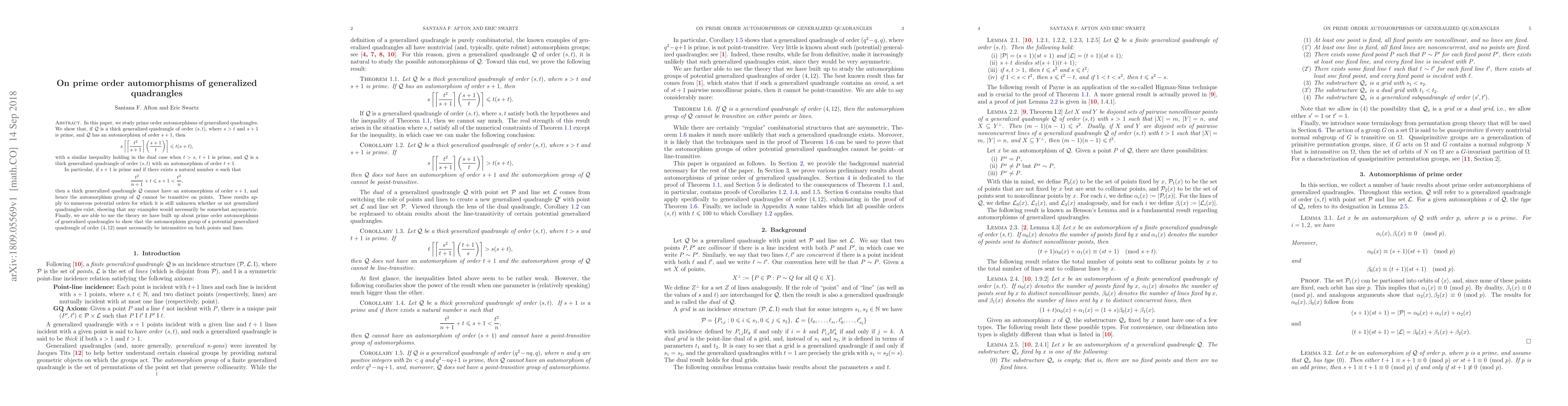 This paper investigates prime order automorphisms in generalized quadrangles, establishing inequalities that constrain their possible orders and automorphism groups. It concludes that for certain prime values, thick generalized quadrangles cannot possess automorphisms of those orders, indicating intransitivity in their automorphism groups.