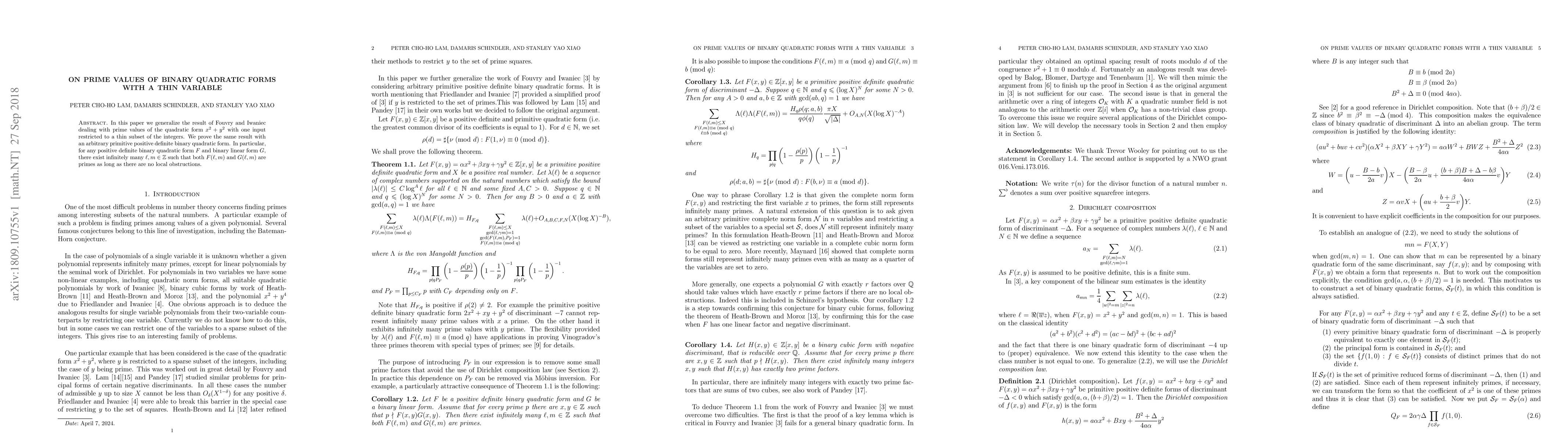 Researchers prove that for many types of binary quadratic forms, there exist infinitely many input pairs where both form values are prime numbers.