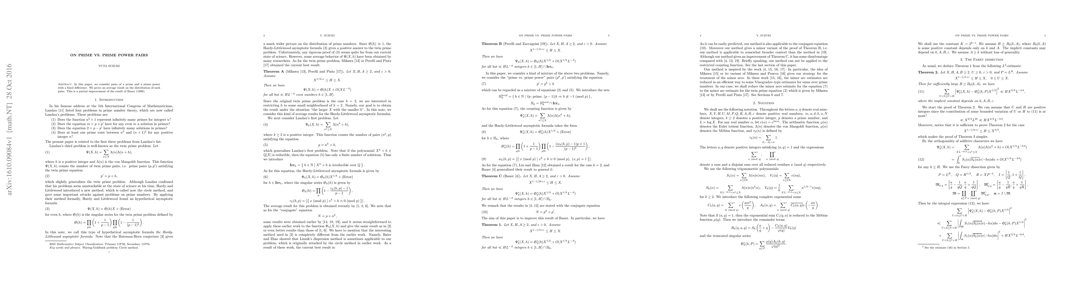 This paper investigates pairs consisting of a prime and a prime power with a fixed difference, providing an average result on their distribution and improving upon Bauer's (1998) findings.