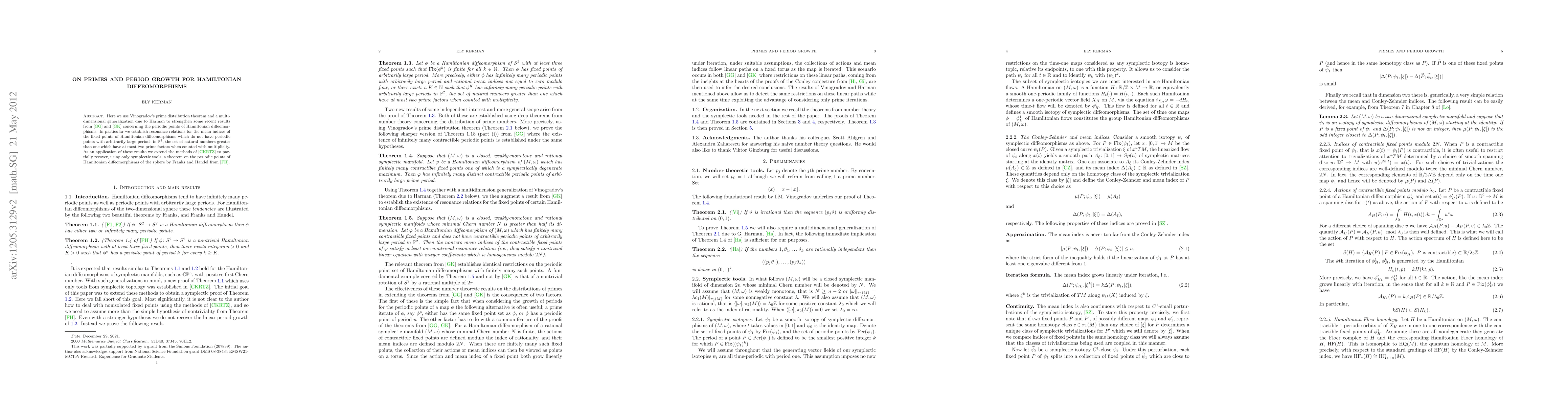 Here we use Vinogradov's prime distribution theorem and a multi-dimensional generalization due to Harman to strengthen some recent results concerning the periodic points of Hamiltonian diffeomorphisms. In particular we establish resonance relations for the mean indices of the fixed points of Hamiltonian diffeomorphisms which do not have periodic points with arbitrarily large periods in $\mathbb{P}^2$, the set of natural numbers greater than one which have at most two prime factors when counted with multiplicity. As an application of these results we partially recover, using only symplectic tools, a theorem on the periodic points of Hamiltonian diffeomorphisms of the sphere by Franks and Handel.