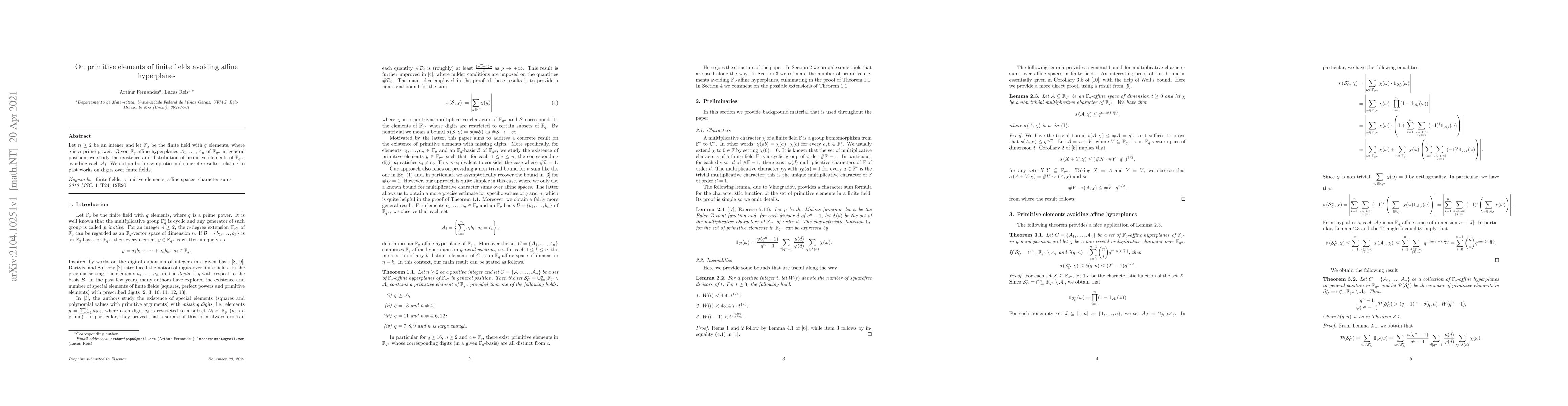 This paper investigates the existence and distribution of primitive elements in finite fields $\mathbb{F}_{q^n}$ that avoid given $\mathbb{F}_q$-affine hyperplanes $\mathcal{A}_1, \ldots, \mathcal{A}_n$. It provides both asymptotic and concrete results, linking findings to previous studies on digits over finite fields.