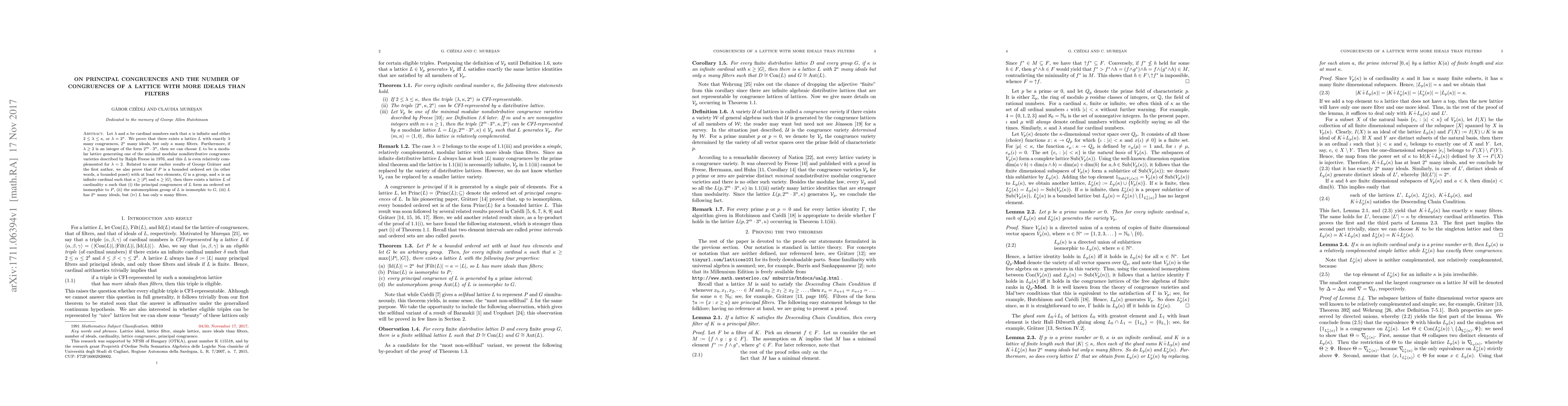 The paper constructs lattices with a specific number of congruences and ideals, but fewer filters, solving a long-standing problem in lattice theory, while also establishing connections to ordered sets and group automorphisms.