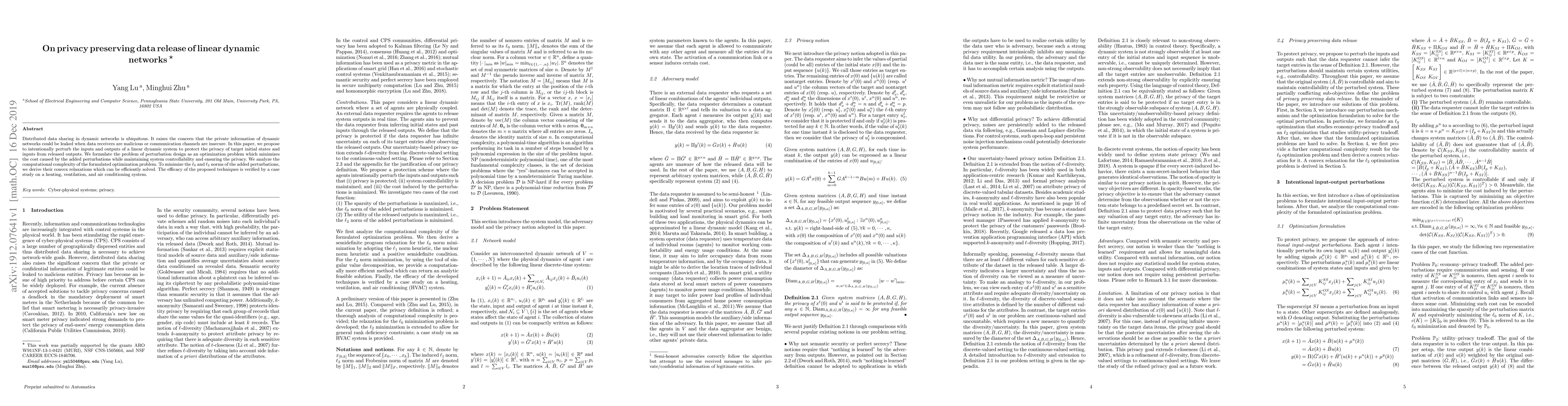Researchers propose a method to protect privacy in linear dynamic networks by intentionally adding noise to inputs and outputs, ensuring malicious data receivers can't infer sensitive information. The approach is verified with a case study on heating systems, showing promise for safeguarding private data in dynamic networks.