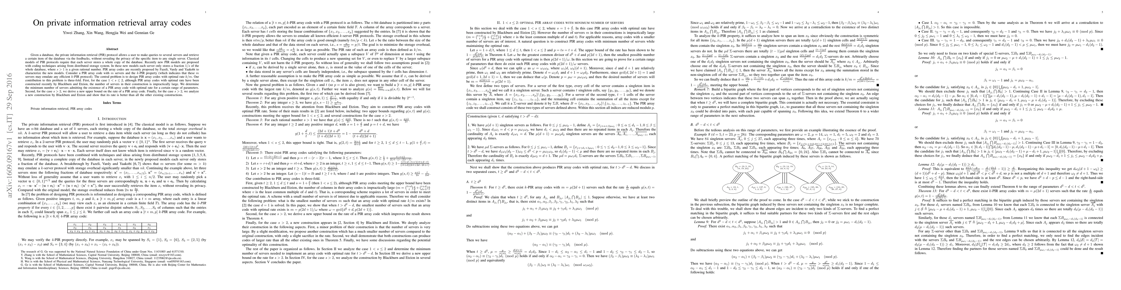 to this problem is three-fold. First, for the case $12$, we derive a new upper bound on the rate of a PIR array code. Finally,