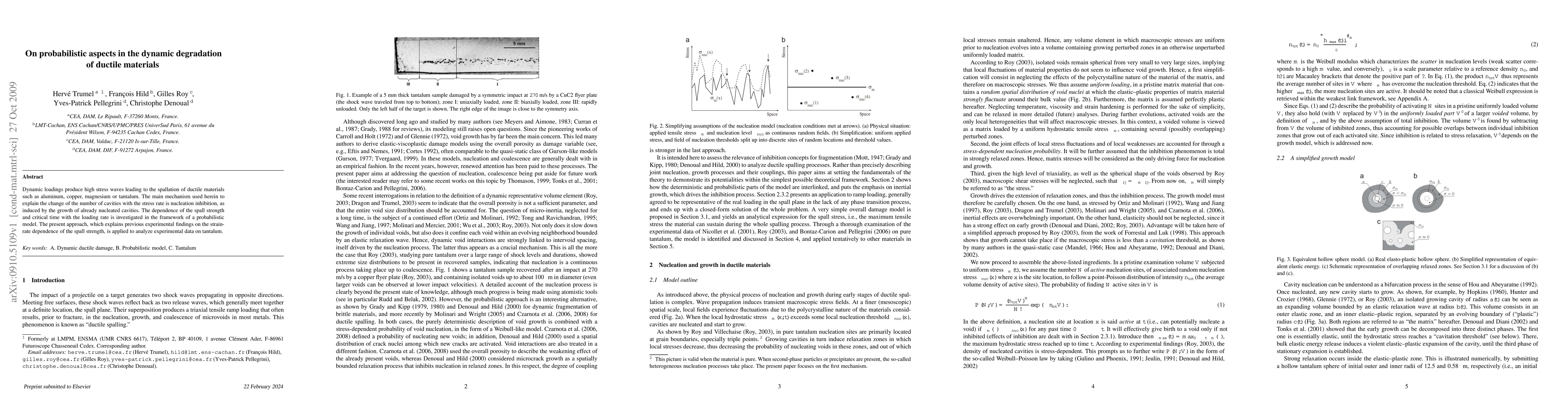 Dynamic loadings produce high stress waves leading to the spallation of ductile materials such as aluminum, copper, magnesium or tantalum. The main mechanism used herein to explain the change of the number of cavities with the stress rate is nucleation inhibition, as induced by the growth of already nucleated cavities. The dependence of the spall strength and critical time with the loading rate is investigated in the framework of a probabilistic model. The present approach, which explains previous experimental findings on the strain-rate dependence of the spall strength, is applied to analyze experimental data on tantalum.