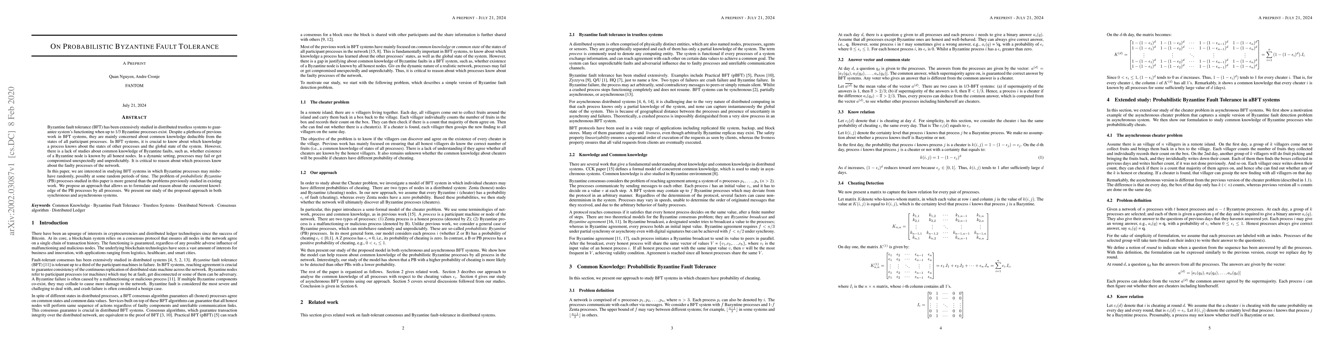 This paper explores probabilistic Byzantine fault tolerance (PBFT) in distributed systems, focusing on how processes can reason about the concurrent knowledge of Byzantine faults in dynamic settings where nodes may fail or be compromised unpredictably. The proposed approach allows for a more general understanding of PBFT compared to existing methods.