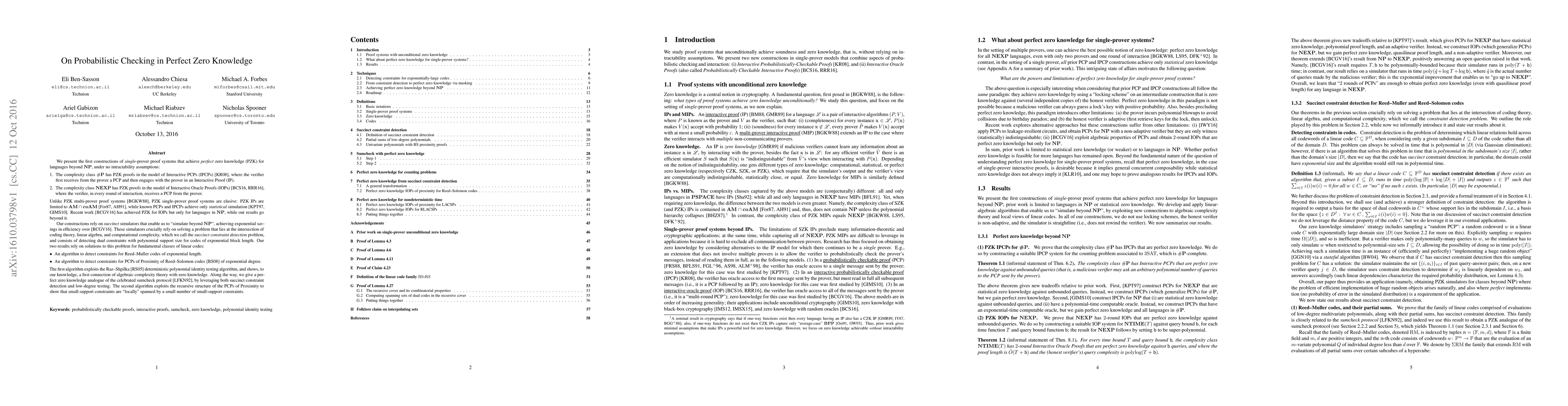 This paper constructs the first single-prover proof systems achieving perfect zero knowledge for languages beyond NP, using Interactive PCPs for #P and Interactive Oracle Proofs for NEXP. The efficiency gains rely on solving a novel succinct constraint detection problem, leading to algorithms for Reed-Muller and Proximity of Reed-Solomon codes.