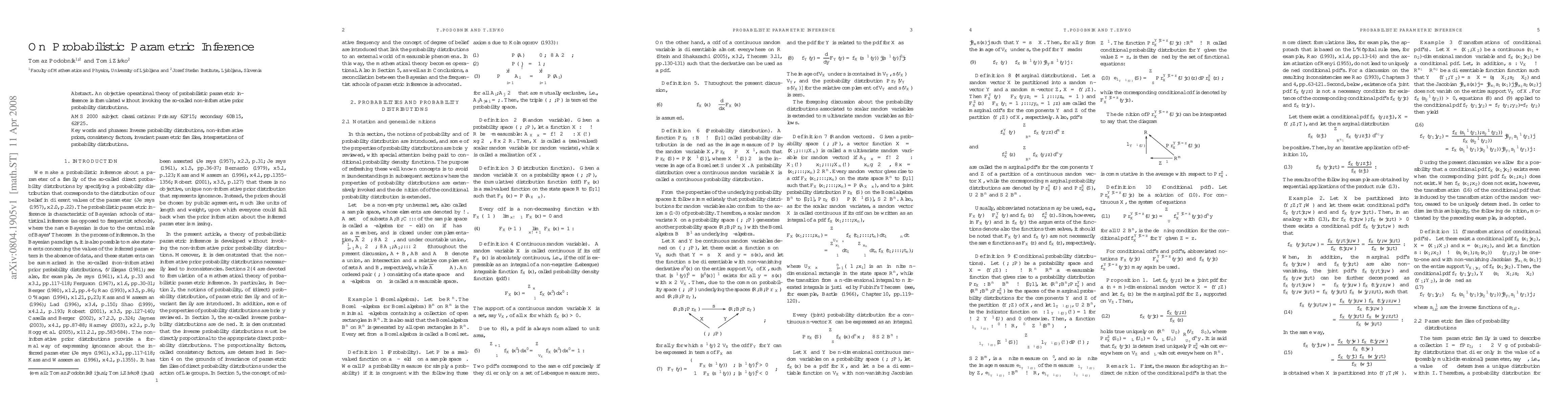 Summary: This paper develops a probabilistic parametric inference framework that avoids the use of non-informative priors, offering an objective operational theory for inference without relying on traditional Bayesian priors.