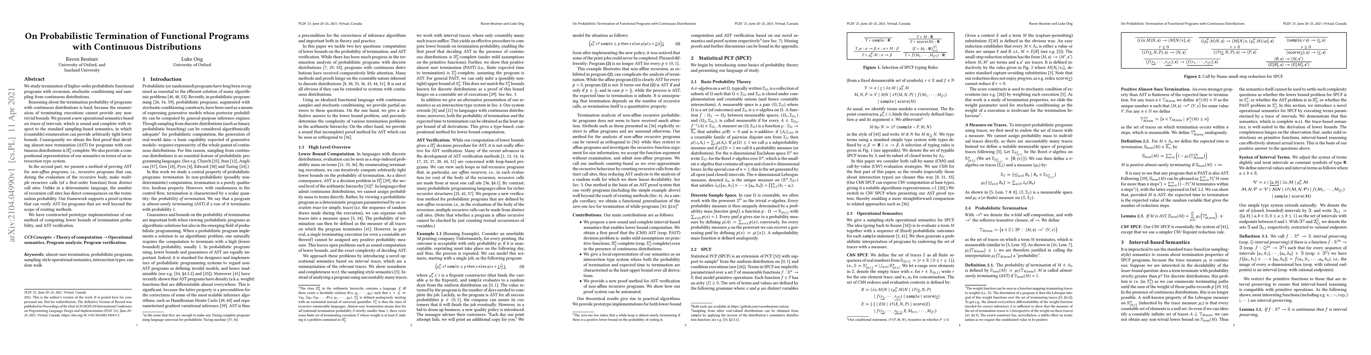 This paper introduces a novel operational semantics for probabilistic functional programs that use continuous distributions, proving its soundness and completeness. It establishes the $\Pi^0_2$-completeness of almost-sure termination (AST) for such programs and presents a compositional type system for verifying AST in non-affine recursive programs.