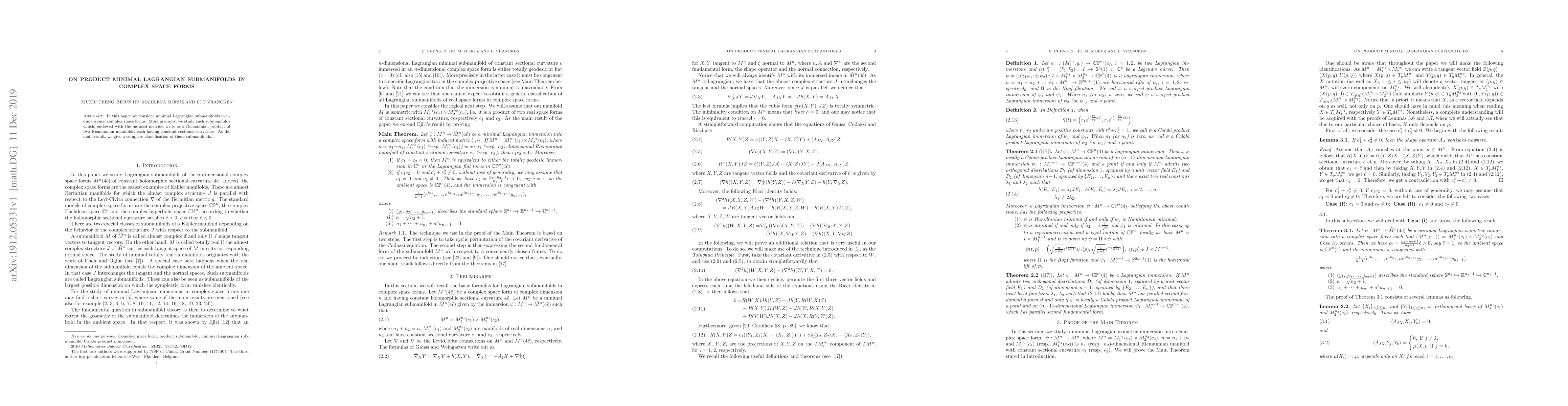 This paper classifies minimal Lagrangian submanifolds in complex space forms that can be expressed as a Riemannian product of two manifolds each with constant sectional curvature, contributing to the understanding of their geometric properties. The main result provides a complete classification of such submanifolds.