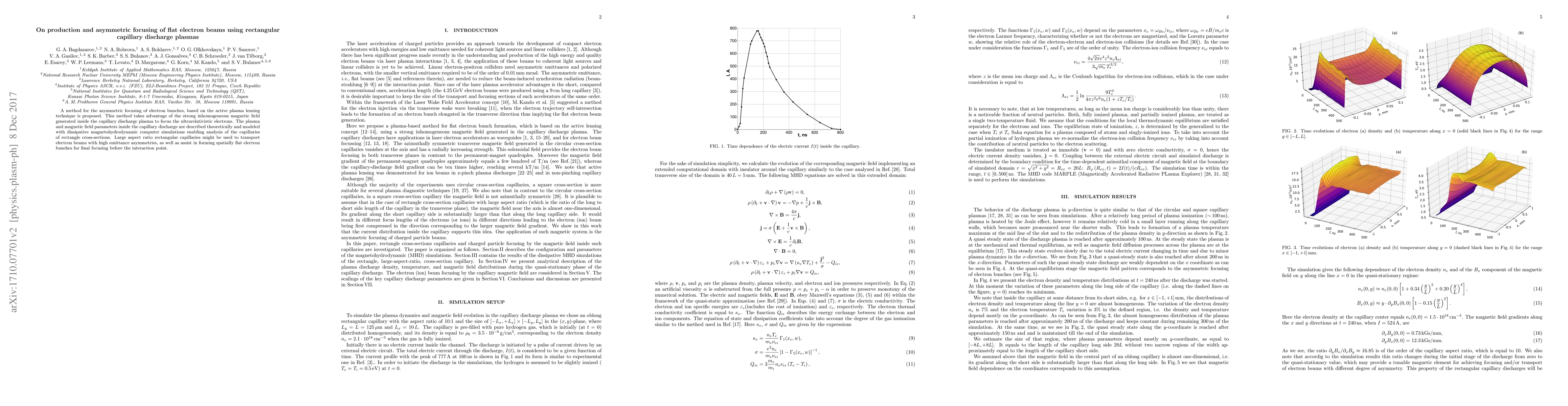 The research proposes a method for asymmetric focusing of electron beams using strong magnetic fields generated within rectangular capillary discharge plasmas. This technique could enable the transport of high-emittance asymmetric electron beams and aid in forming flat electron bunches for advanced focusing prior to interaction.