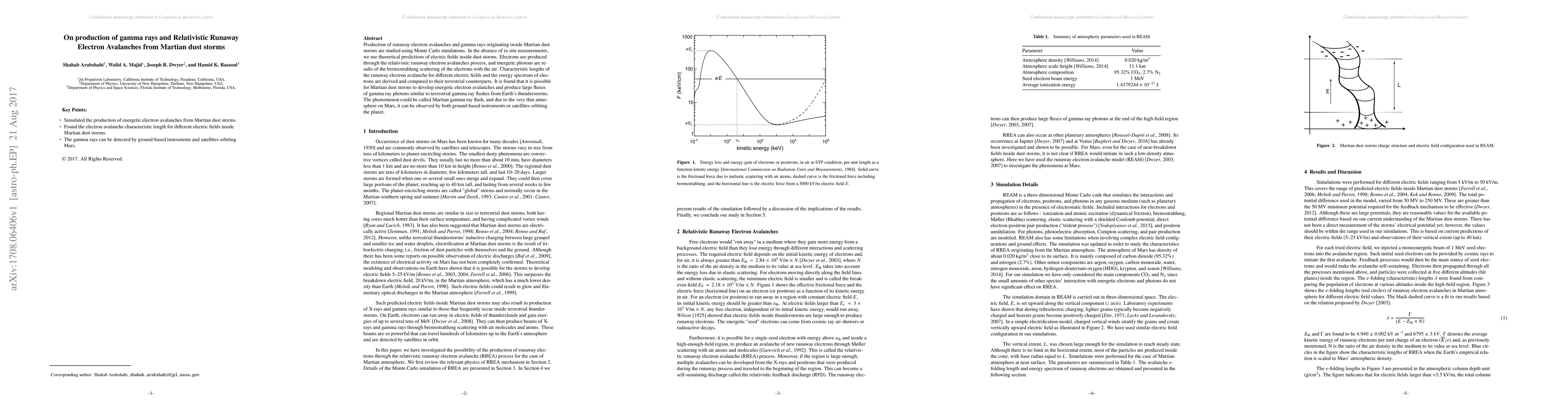 This paper investigates the production of gamma rays and relativistic runaway electron avalanches within Martian dust storms using Monte Carlo simulations. The study finds that Martian dust storms can generate energetic electron avalanches and significant gamma ray fluxes, comparable to terrestrial gamma ray flashes, potentially observable via ground-based or satellite instruments.