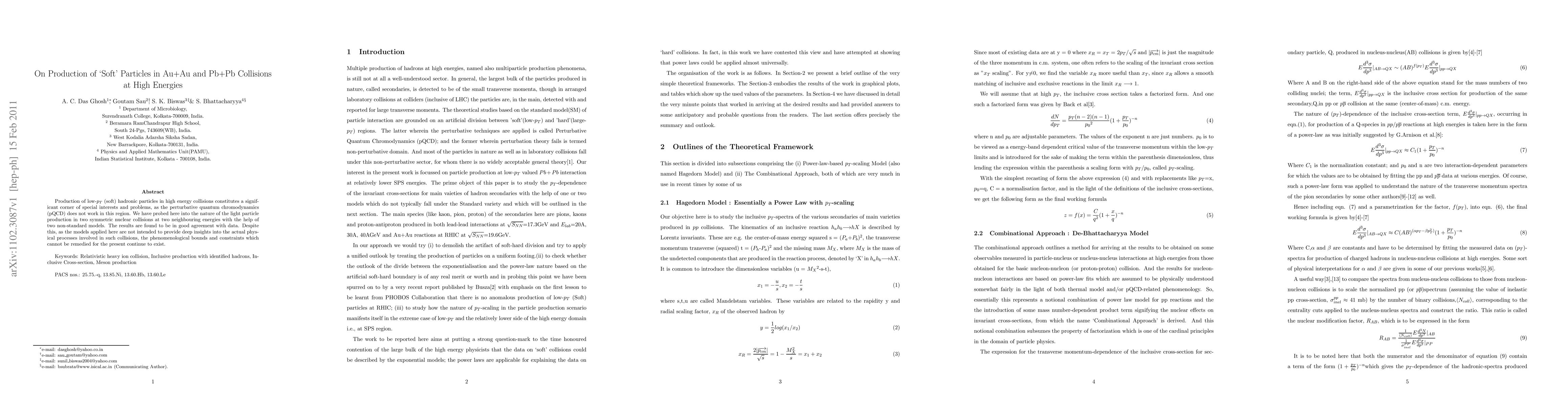 Production of low-$p_T$ (soft) hadronic particles in high energy collisions constitutes a significant corner of special interests and problems, as the perturbative quantum chromodynamics (pQCD) does not work in this region. We have probed here into the nature of the light particle production in two symmetric nuclear collisions at two neighbouring energies with the help of two non-standard models. The results are found to be in good agreement with data. Despite this, as the models applied here are not intended to provide deep insights into the actual physical processes involved in such collisions, the phenomenological bounds and constraints which cannot be remedied for the present continue to exist.
