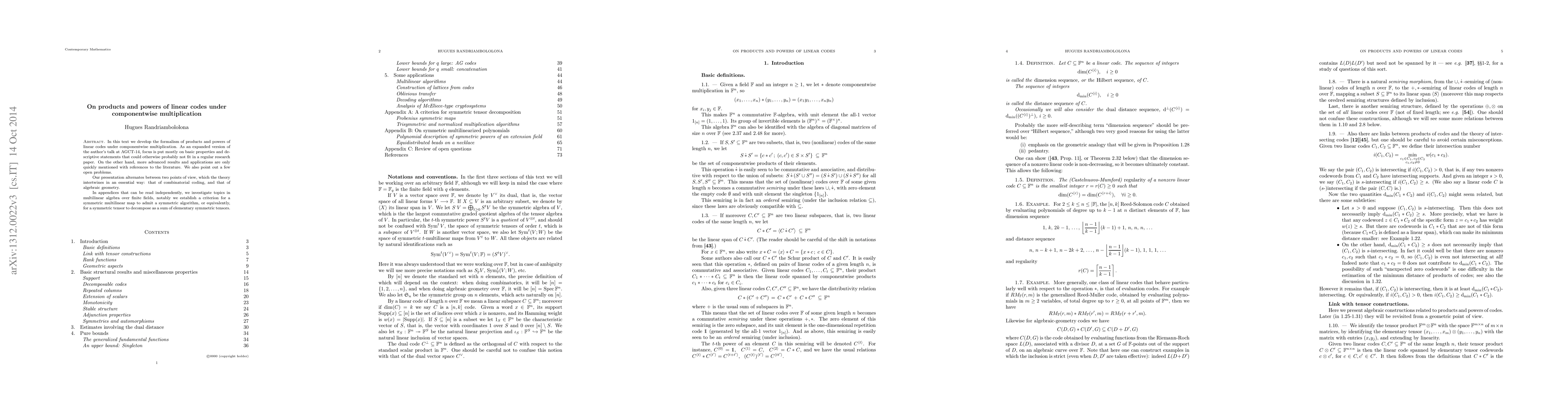 This paper develops a formalism for products and powers of linear codes under componentwise multiplication, integrating combinatorial coding and algebraic geometry perspectives. It highlights key findings on multilinear algebra over finite fields and opens up new research directions in the field.