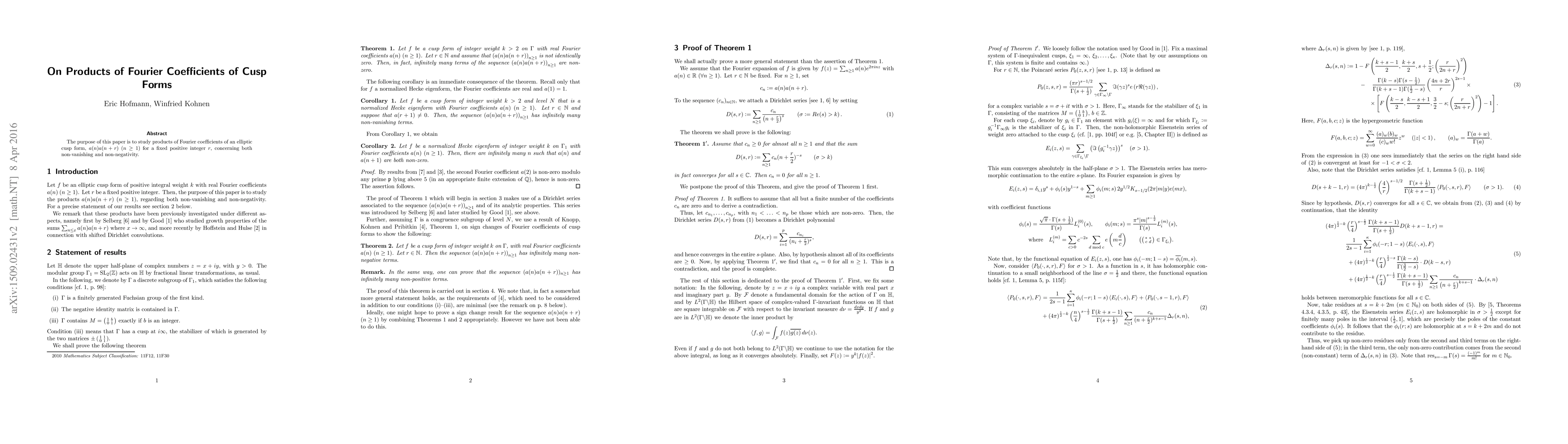 This paper investigates the products of Fourier coefficients of an elliptic cusp form, $a(n)a(n + r)$, focusing on their non-vanishing and non-negativity properties for $n \geq 1$ and a fixed positive integer $r$.