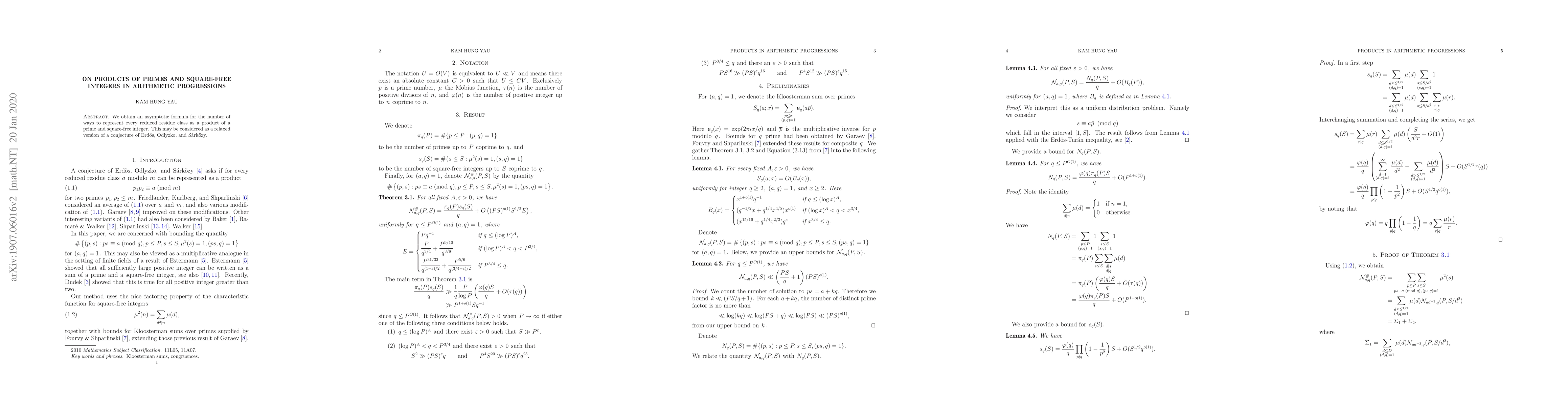 Summary: This paper provides an asymptotic formula for representing each reduced residue class as a product of a prime and a square-free integer, offering a solution to a conjecture by Erdős, Odlyzko, and Sárközy in a more relaxed form.