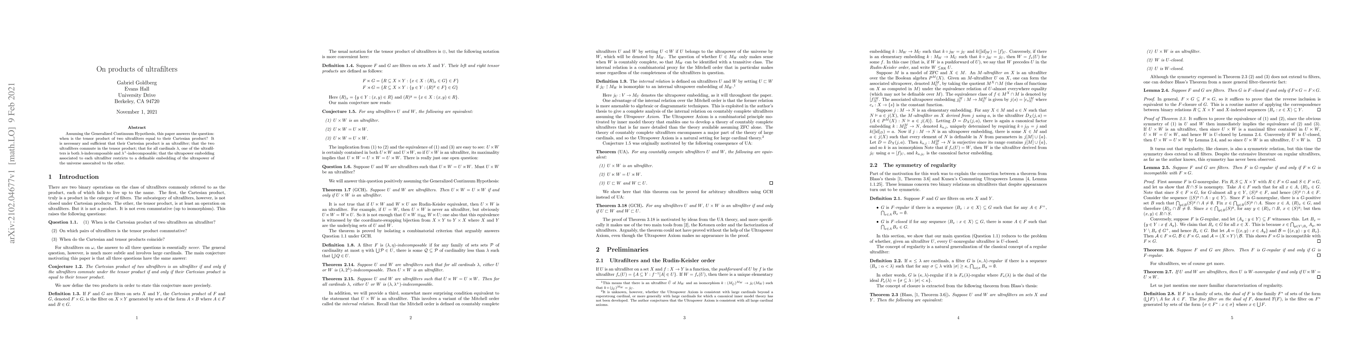 This paper under the Generalized Continuum Hypothesis determines when the tensor product of two ultrafilters equals their Cartesian product, finding that it requires the Cartesian product to be an ultrafilter, commutativity of the ultrafilters, specific indecomposability conditions, and definable embedding restrictions of ultrapowers.