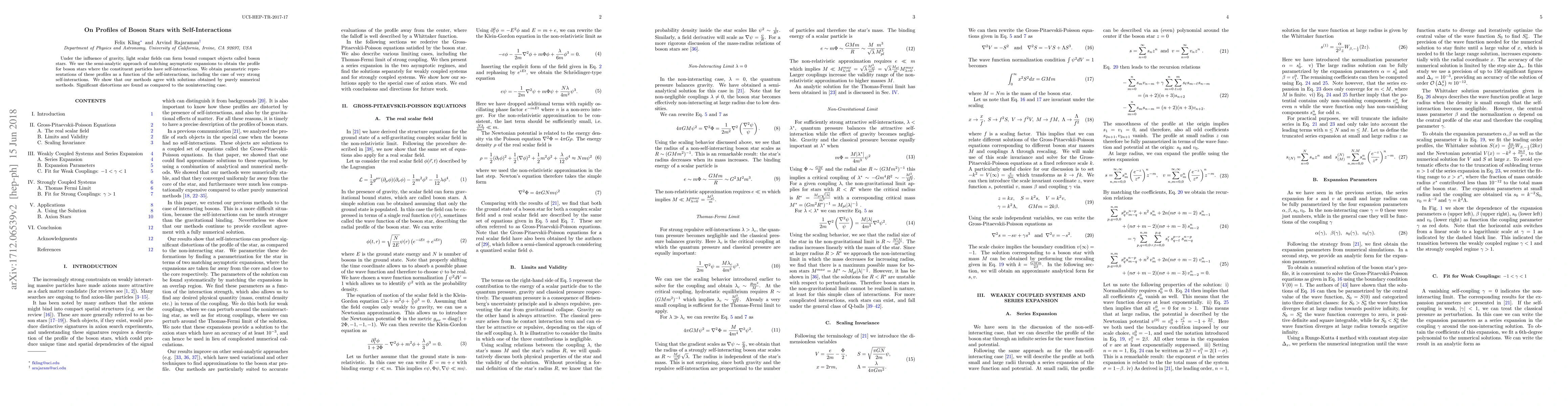 Researchers used mathematical techniques to study the profiles of boson stars with self-interactions, finding significant distortions compared to noninteracting cases.