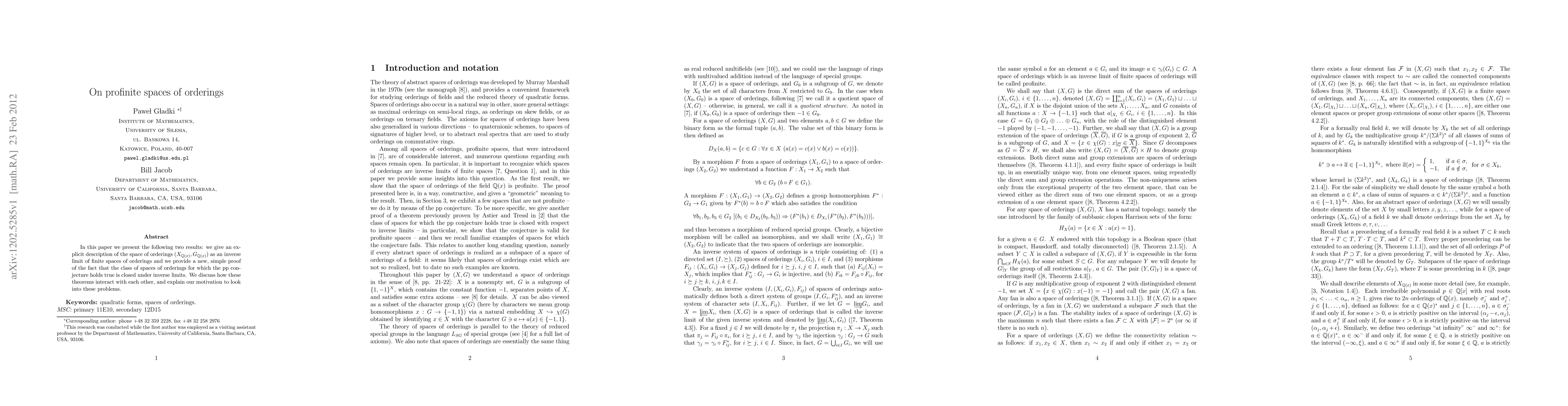 In this paper we present the following two results: we give an explicit description of the space of orderings of the field Q(x) as an inverse limit of finite spaces of orderings and we provide a new, simple proof of the fact that the class of spaces of orderings for which the pp conjecture holds true is closed under inverse limits. We discuss how these theorems interact with each other, and explain our motivation to look into these problems.