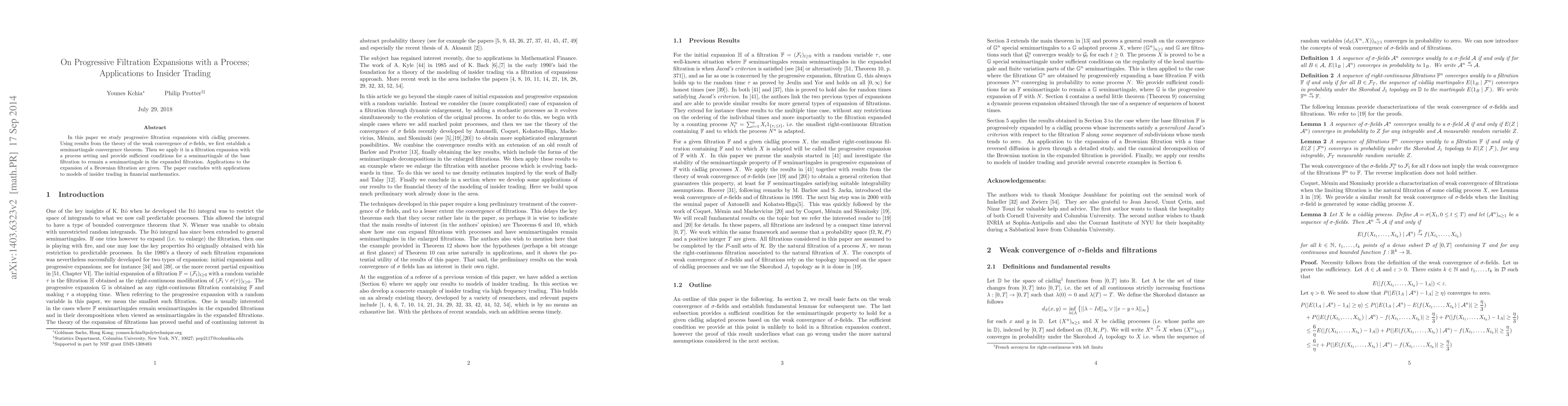 This paper explores progressive filtration expansions with c\`adl\`ag processes, establishing a semimartingale convergence theorem and sufficient conditions for semimartingales to remain valid in expanded filtrations. It concludes with applications to Brownian filtration expansions and models of insider trading in financial mathematics.